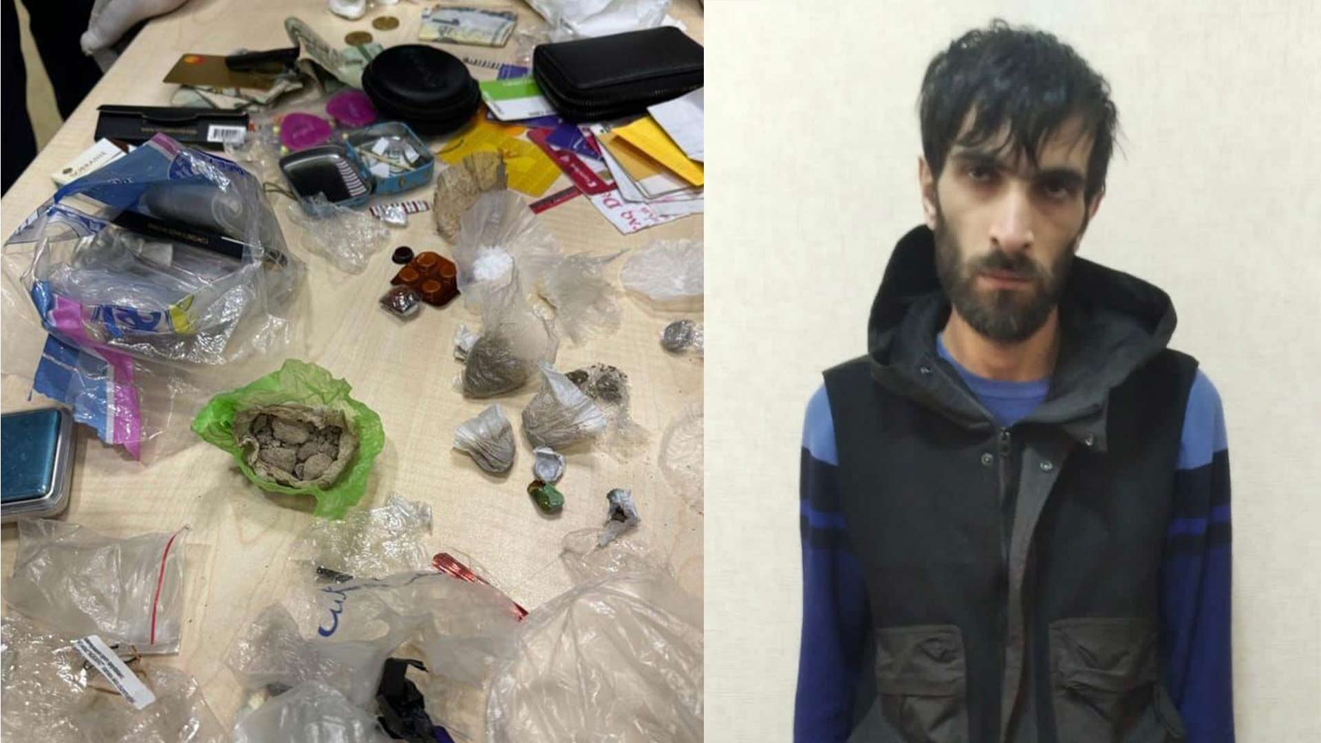RPŞ-nin əməkdaşları tərəfindən keçirilən əməliyyat zamanı şəhər sakini Tural Mahmudov saxlanılıb. Şəxsi axtarış zamanı ondan bükümlərdə heroin, tiryək, qurudulmuş marixuana, eləcə də preqabalin və metadon həbləri aşkar edilərək götürülüb.