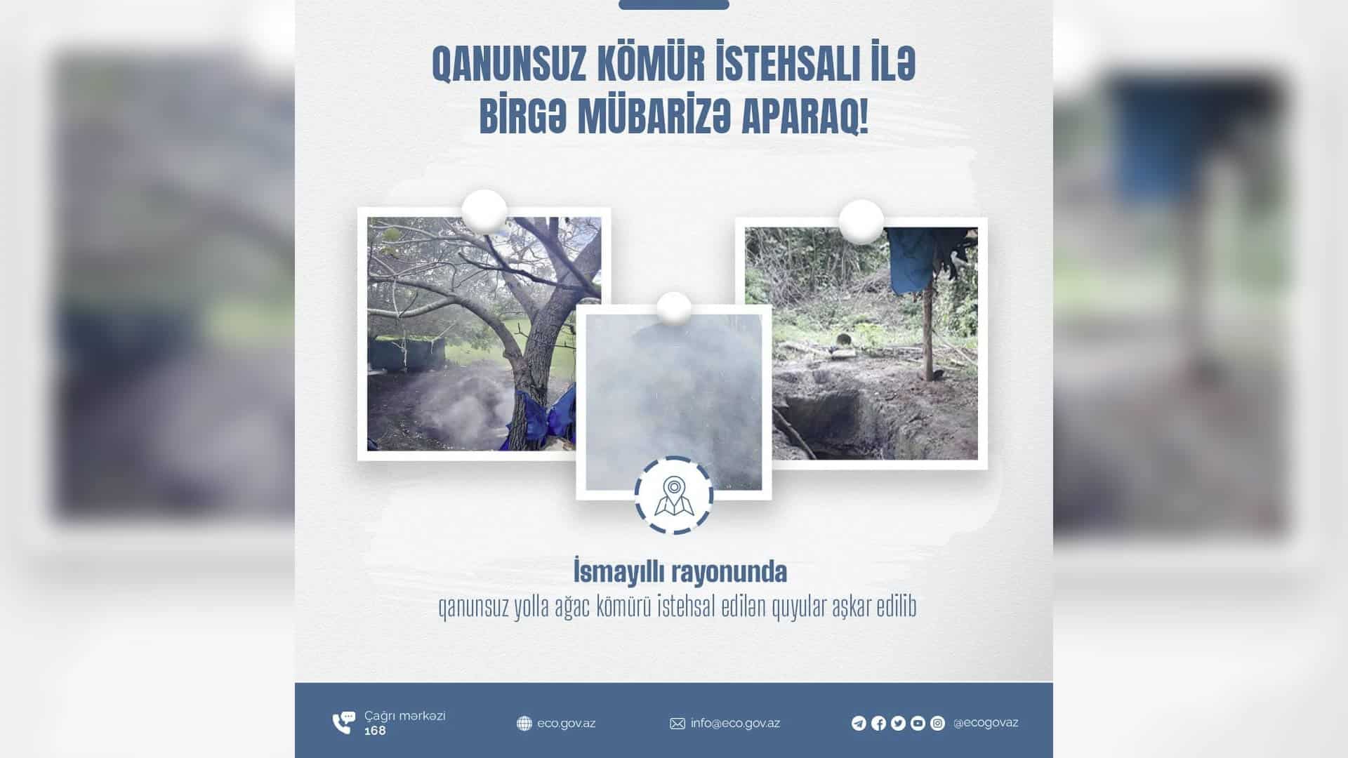 Nəzarət tədbirləri zamanı Qaraqaya kənd sakinləri Qürbət Hacıyevin, Ramil Rüstəmovun və Elçin Əzizovun həyətyanı sahələrində qanunsuz yolla ağac kömürü istehsal edilən kömür quyuları aşkar edilib.