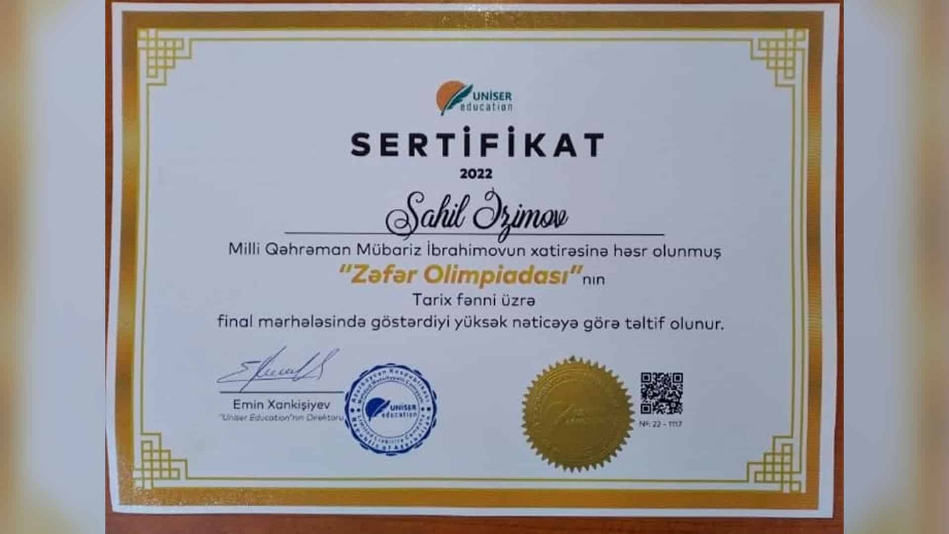 İsmayıllıdan olan tarix müəllimi "Zəfər Olimpiadası"nda uğurla iştirak edib. Bu barədə ShimalNews 10 noyabr tarixində sosial şəbəkələrə istinadən məlumat verir.