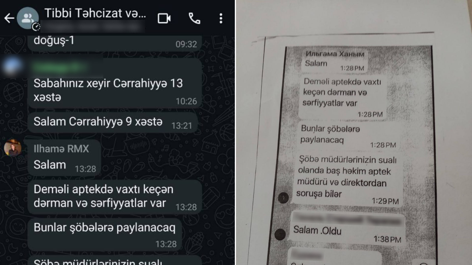 İddialara görə, ötən il oktyabrın 14-də İlhamə Hacıyeva tərəfindən tibb işçilərinin “WhatsApp” qrupuna bu cür mesaj göndərilib: