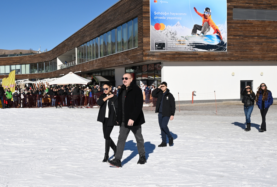 Sonra dövlət başçısı, birinci xanım və ailə üzvləri Şahdağ Turizm Kompleksinin ərazisində inşa edilən Xizək Stadionu Kompleksinin “Xizək klubu” binasının tikintisi ilə tanış olublar.