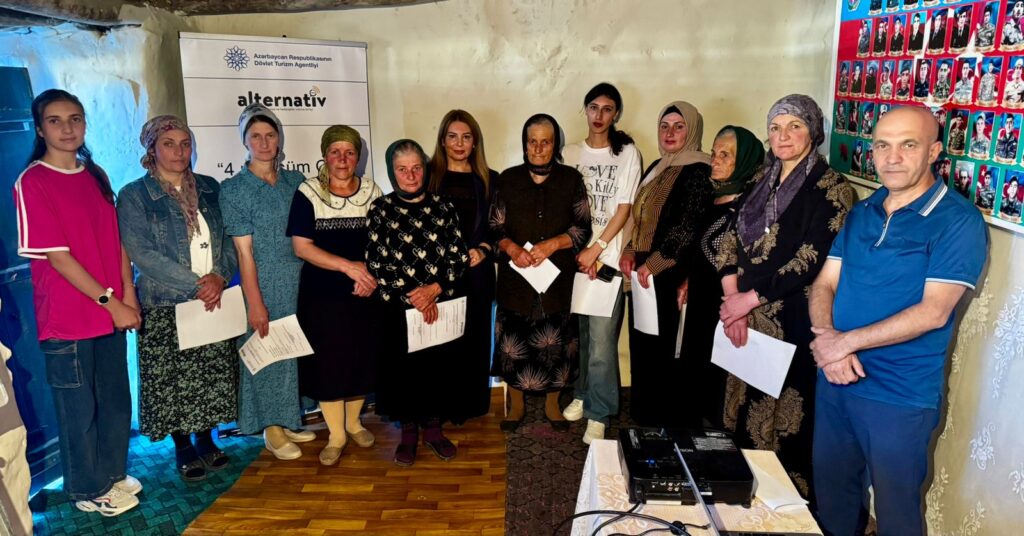 Kənd sakinləri İlqar və Səkinə Yaqubovların ev təsərrüfatında yaradılan yerli turizm xidmətləri nümunəsində yerli dəyərlərin və resursların tanıdılması, brendləşmə strategiyaları və təbiət-tarix sintezinin təqdimatı keçirilib.