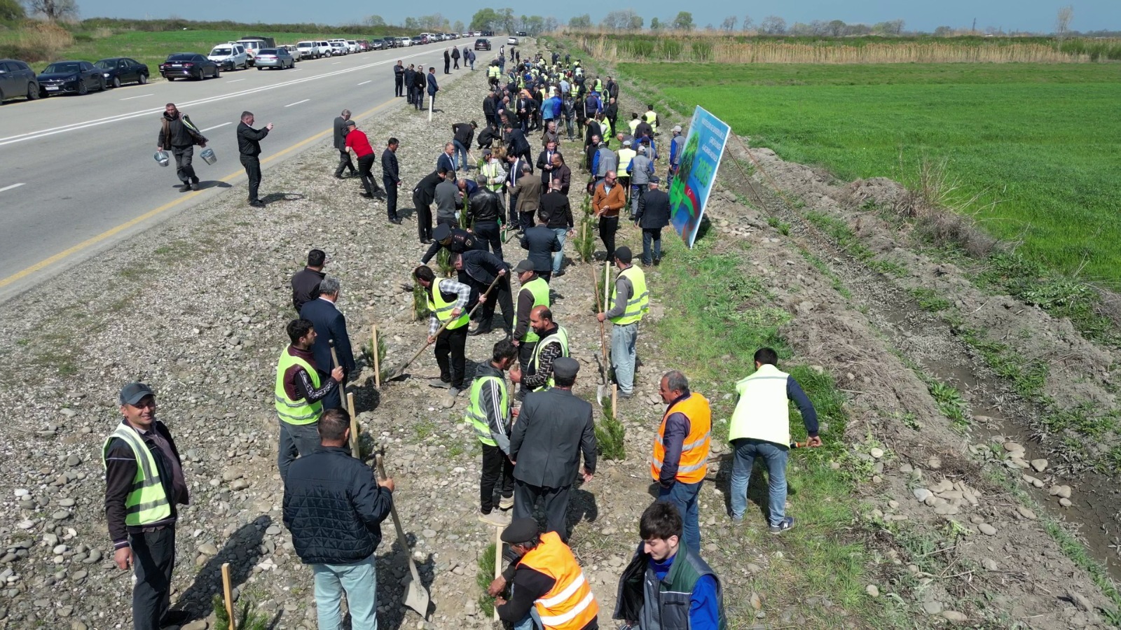Ekoloji tədbir zamanı avtomobil yolunun kənarına yerli iqlim şəraitinə uyğun gələn 1000-dən çox şam ağacı əkilib. Basdırılan ağaclara aqrotexniki qulluq göstərilib, suvarılması təmin olunub.