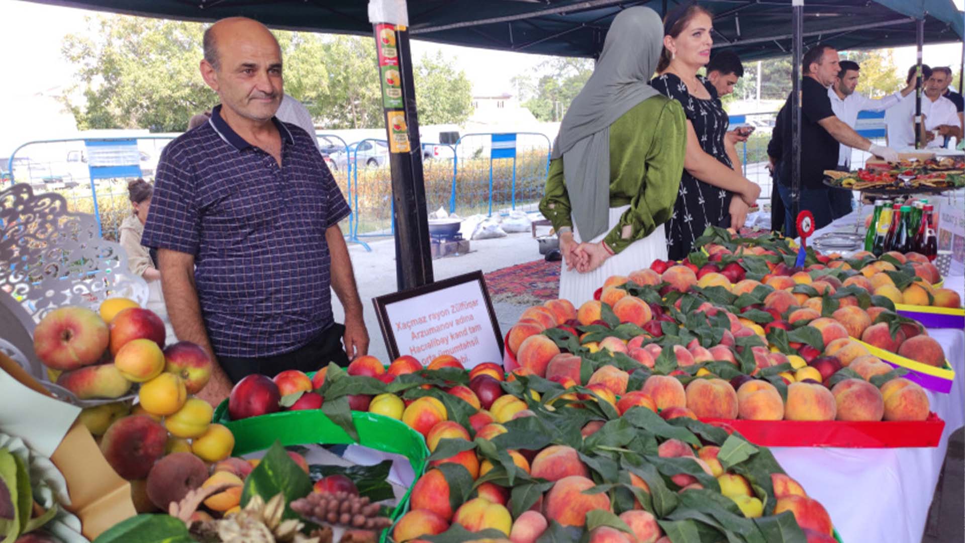 “Şaftalı” festivalında rayonda fəaliyyət göstərən fermerlər və ailə təsərrüfatları məhsullarını nümayiş etdirir, birbaşa satış həyata keçirirlər.