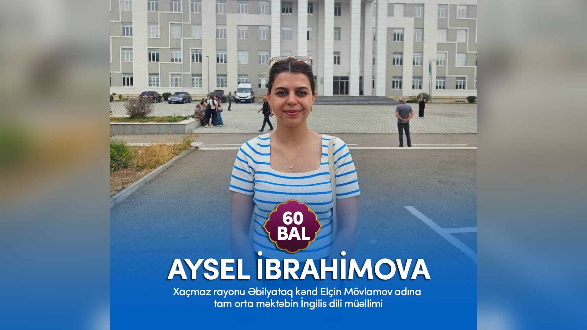 Əbilyataq kənd Elçin Mövlamov adına tam orta məktəbin İngilis dili müəllimi Aysel İbrahimova 60 bal toplayıb.
