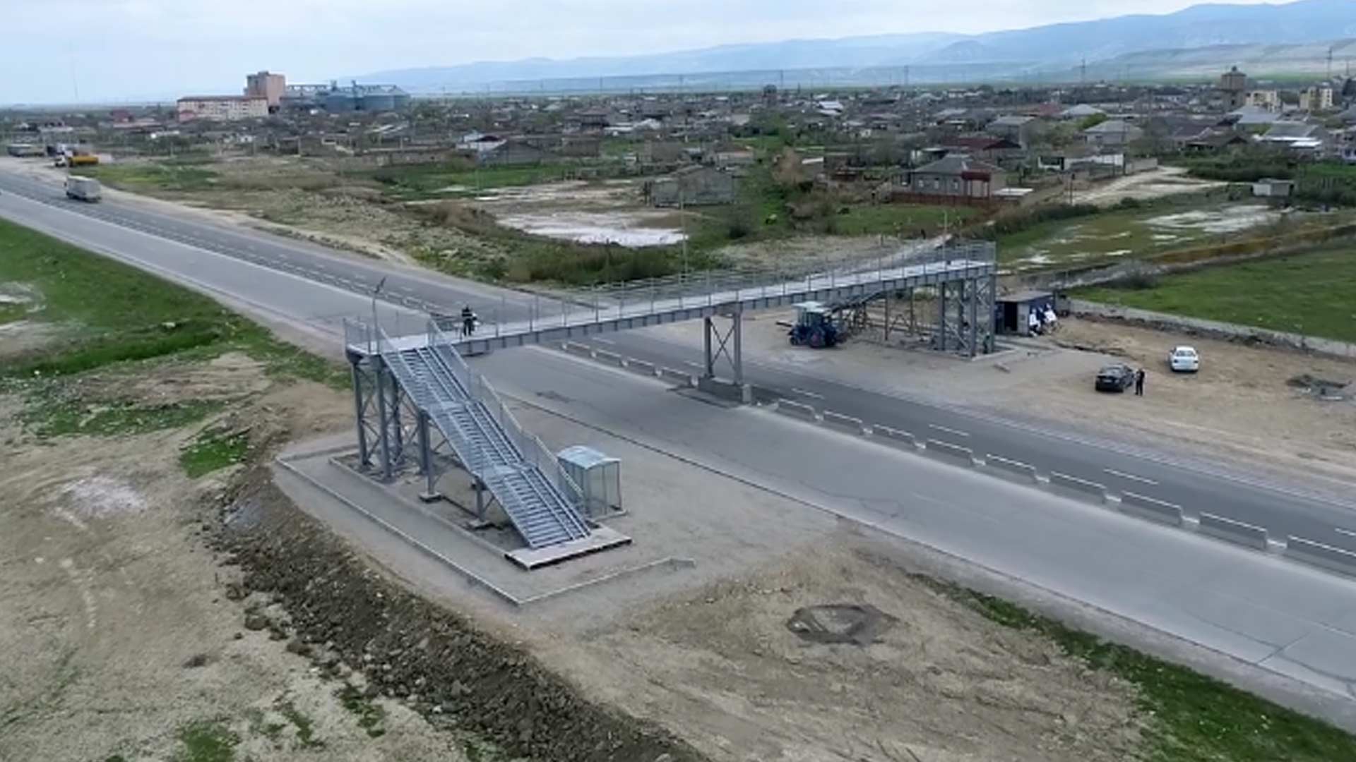 Layihə üzrə magistralın 72.5-ci km-də tikilən yerüstü keçidin ümumi uzunluğu 48.6, eni 3 metrdir. Yol səviyyəsindən hündürlüyü 5.5 metr olan keçid metal konstruksiyalıdır.