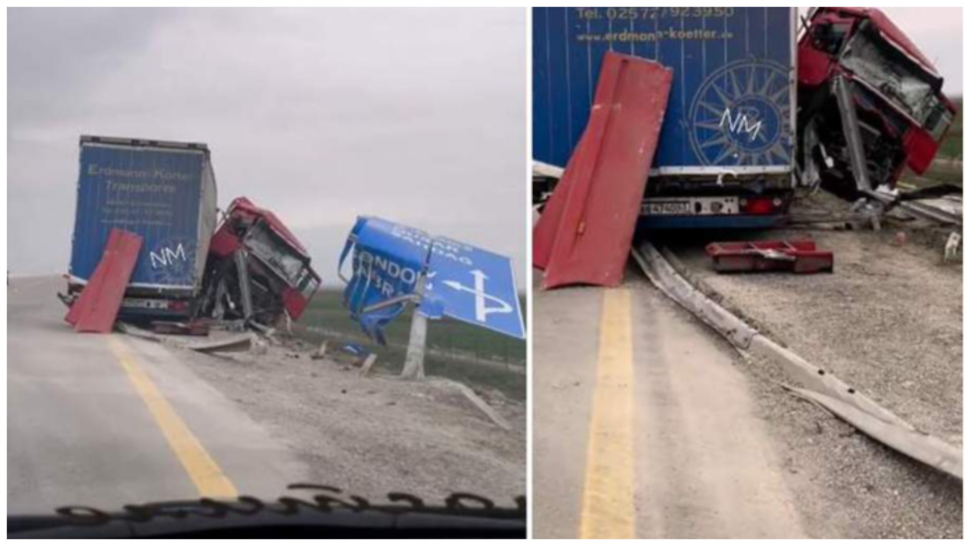 Belə ki, BB 4740 | 63 rus dövlət qeydiyyat nişanlı TIR sürücünün idarəetməsindən çıxaraq öncə dəmir baryerə, daha sonra isə istiqamətgöstərici lövhəyə çırpılıb. Zərbənin təsirindən yük maşınının kabinəsinə ciddi ziyan dəyib.