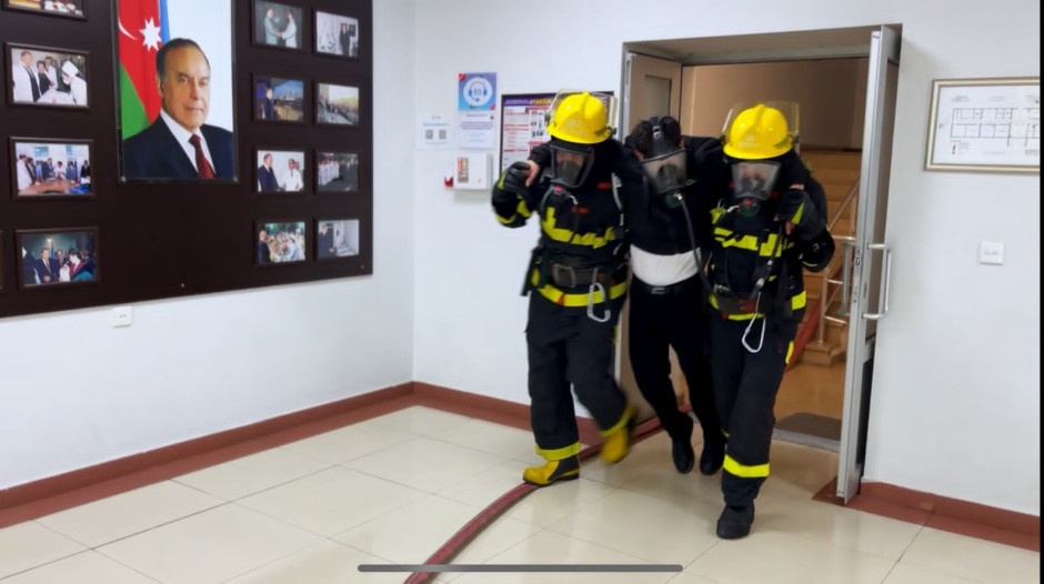Belə ki, şərti yanğın zamanı "həyəcan" siqnalı verildikdən sonra FHN-in yanğın-xilasetmə bölmələri operativ qaydada hadisə yerinə çataraq xəstəxananın müvafiq personalı ilə əlaqəli şəkildə obyektin təxliyə planına uyğun insanların təhlükəsiz yerə təxliyəsini həyata keçirib, paralel olaraq "yanğınla mübarizə" tədbirləri yerinə yetirilib, habelə şərti xəsarət almış şəxslərə "ilkin yardım göstərilib".