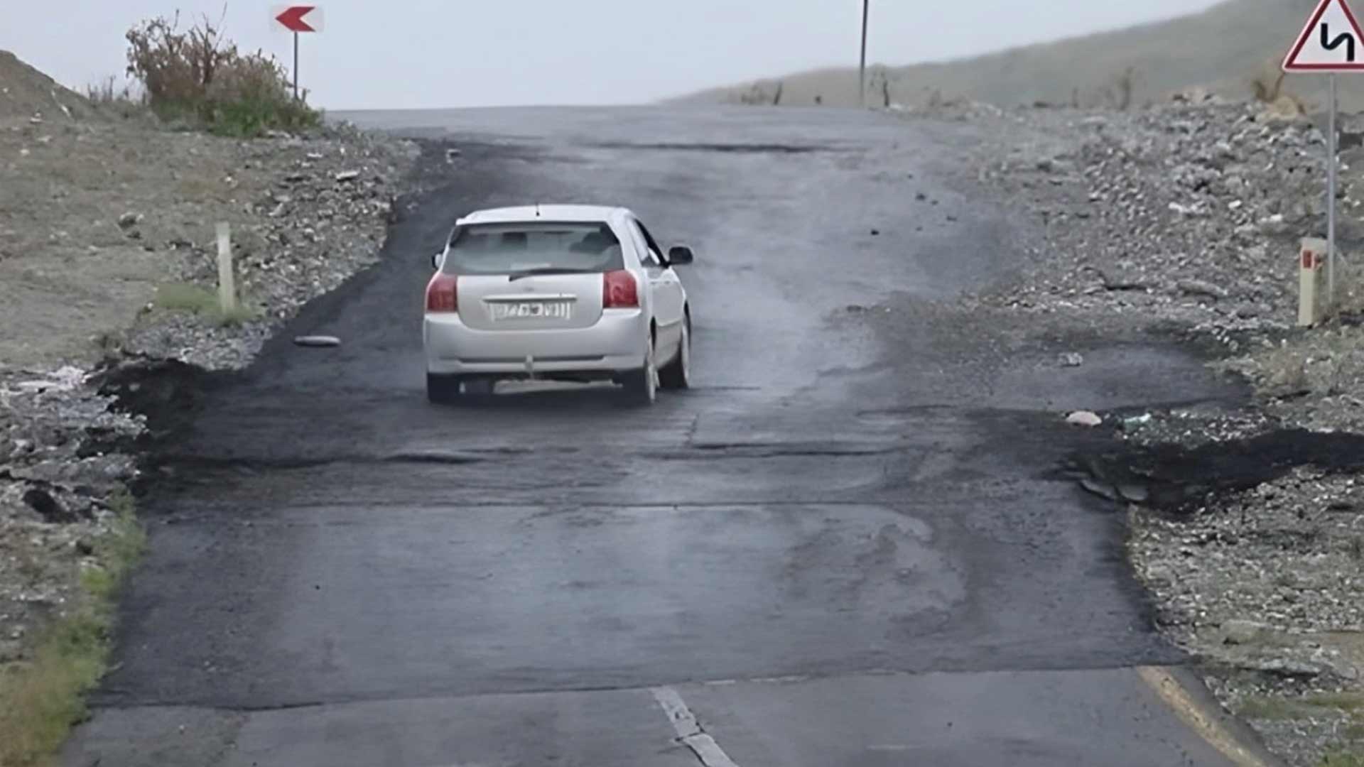 "Dəmirçi-Lahıc yolu bərbad vəziyyətdədir, demək olar ki, tamamilə dağılıb, uçmuş vəziyyətdədir. Hər yağışdan sonra çatlar çoxalır, çuxurlar yaranır. Maşını burada sürmək qeyri-mümkündür. Uçqunlar, döngələr var, amma yol nişanları yoxdur", - sürücü narazılığını bildirib.
