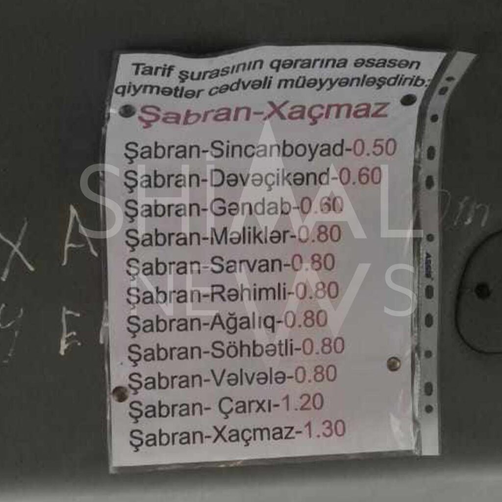 Onlar Shimal.News-a müraciət edərək bildiriblər ki, Şabranın Məliklər, Uzunboyad, Rəhimli və Ağalıq kəndlərinə gediş haqqı ilin ilk həftəsinə qədər 70 qəpik olduğu halda, artıq 80 qəpiyə gədər artırılıb. Halbuki, Tarif Şurasının müvafiq rəsmi qərarı olmayıb.