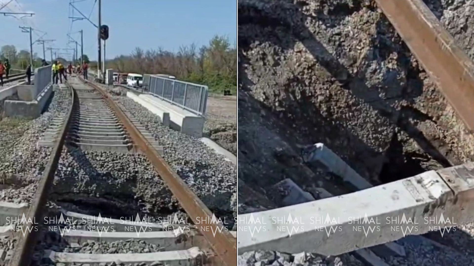 Shimal.News xəbər verir ki, Xaçmaz rayonu, Qaraçı kəndi yaxınlığında Ağçayın üzərindəki yeni salınan dəmiryolu körpüsünün bir hissəsi uçub və dağılıb.