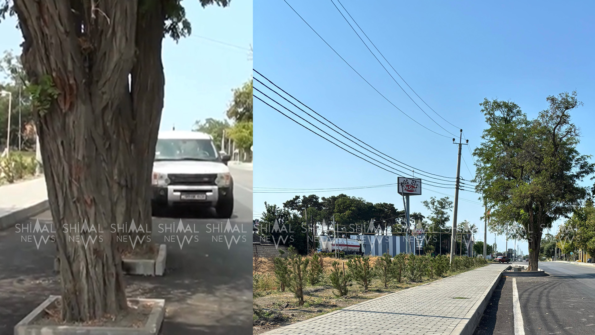 Ağacların ətrafı bordürlə əhatələnib. Bununla yolun hərəkət hissəsini artıq yalnız ağaclar deyil səki də zəbt edir.