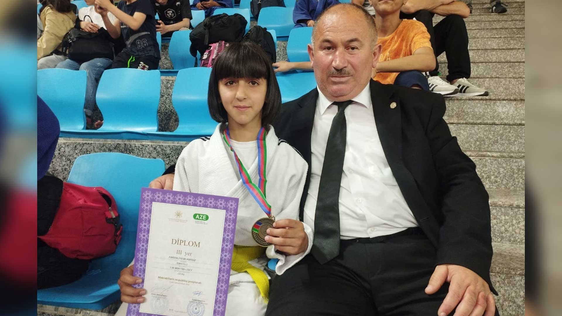 Nərgiz Fərzəliyeva 32 kq çəki dərəcəsində bürünc medal qazanaraq qaliblər kürsüsünə qalxıb.