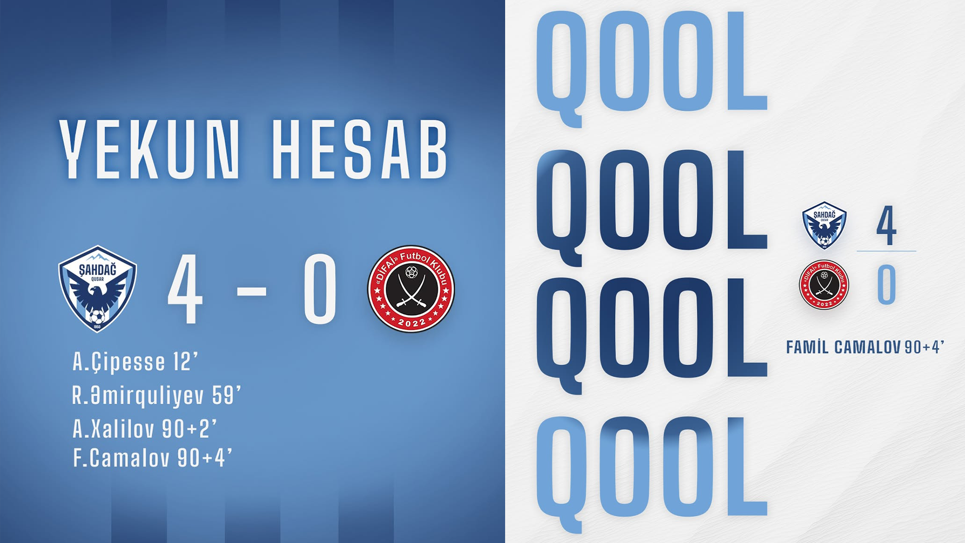 Meydan sahibi "Şahdağ Qusar" qonaq olan "Difai"ni 4:0 hesabla məğlub edib.